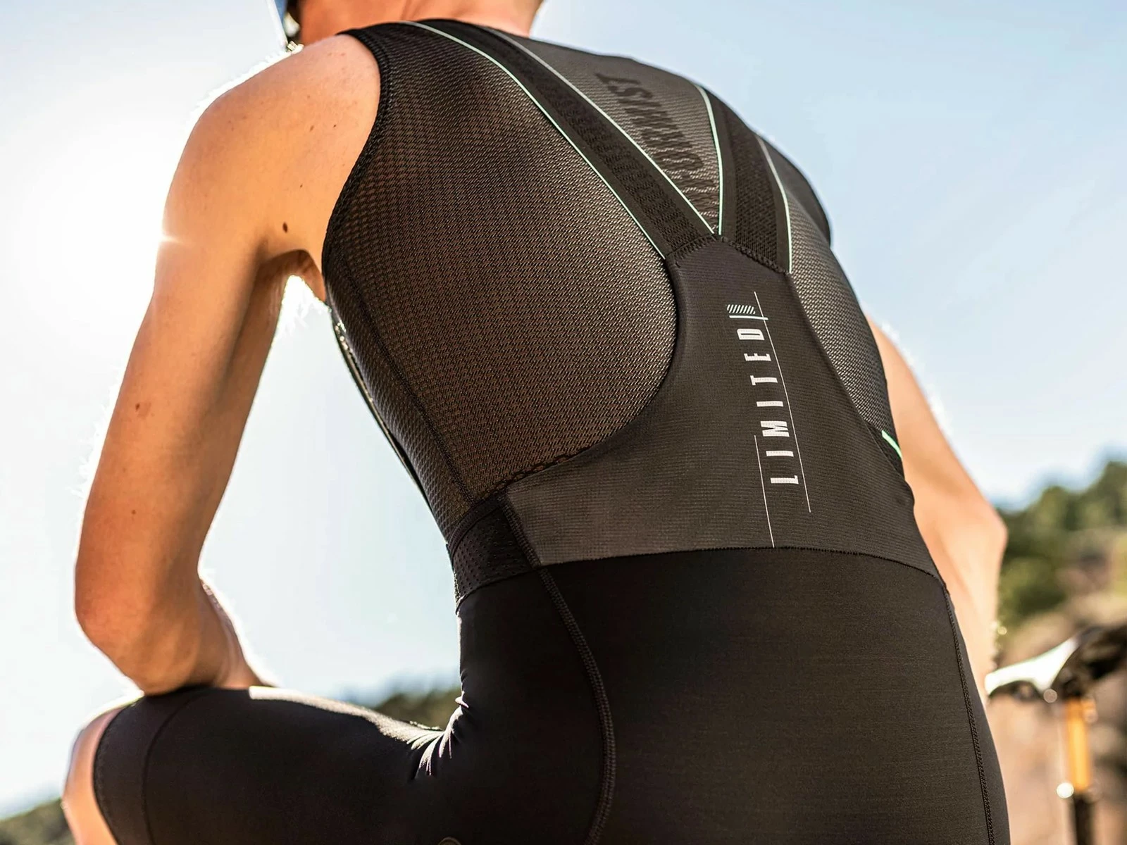 Il conserve la même longueur, bien qu’il emprunte l’attache de 75 mm du short cycliste Absolute, ainsi que l’attache gauche avec le réflecteur irisé et l’attache droite avec le logo en vinyle. La matière de l’attache est plus large, plus légère et est perforée au centre.