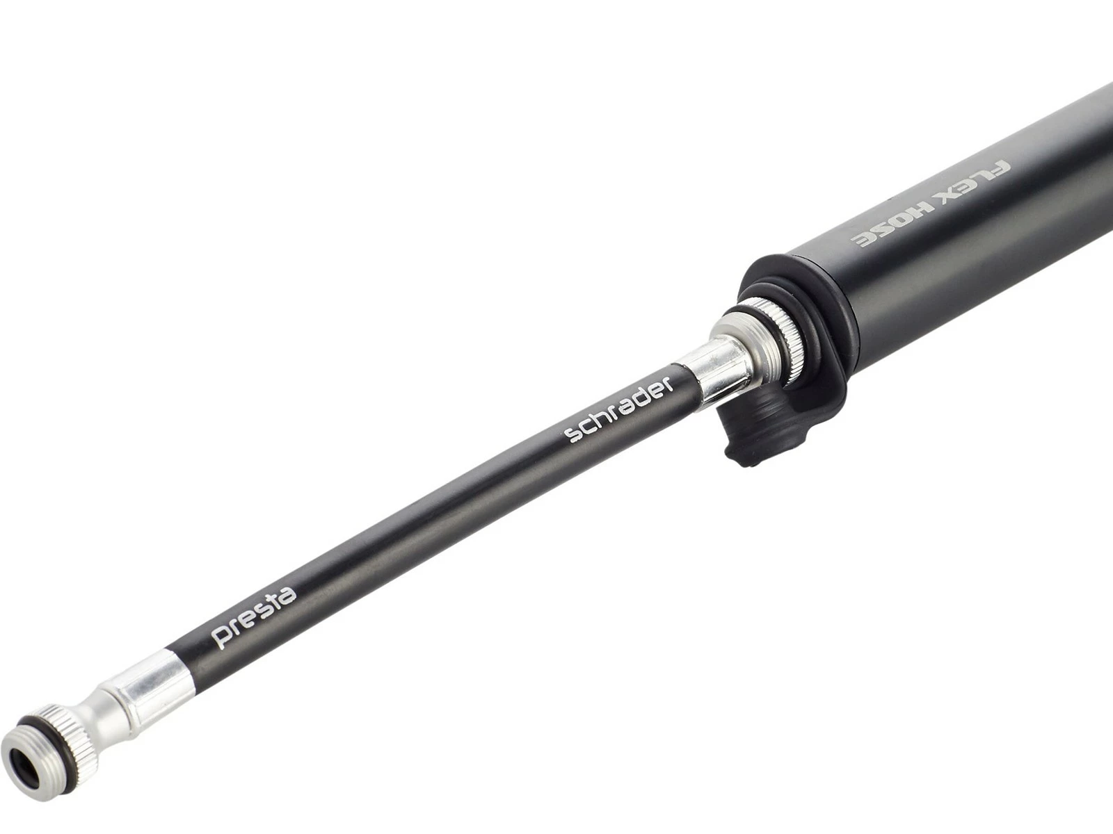 La pompe à main est fournie avec le flexible Flex breveté compatible avec les vannes Presta et Schrader.