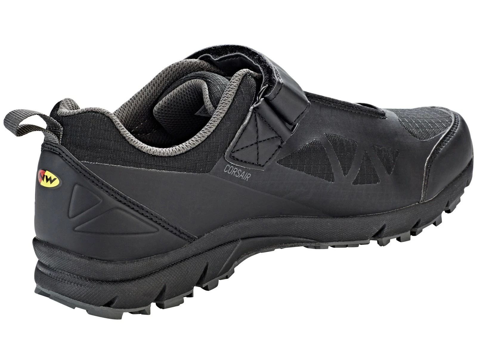 Les chaussures VTT NORTHWAVE Corsair Noir/Jaune sont issues de la gamme Sport du fabricant italien, qui propose ici un modèle abordable et particulièrement léger, qui convient bien aux longues sorties All Mountain !Offrant une belle polyvalence, ces chaussures Corsair sont à l’aise à la marche aussi bien que sur la pédale, grâce à leur semelle Damp-Lite. Légère, elle présente un design particulier, associant des crampons en caoutchouc de taille différente et différemment orientés pour assurer une belle adhérence sur n’importe quel type de terrain.L’empeigne est soignée, avec plusieurs inserts respirants intégrés à un matériau principal léger et résistant, renforcé sur la pointe et le talon par des coques encore plus solides.Le système de serrage associe une molette SLW2 et une lanière velcro supérieure pratique pour appliquer une pression ferme sur le cou-de-pied. Informations supplémentaires